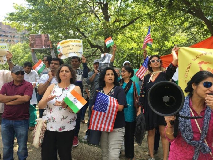 प्रदर्शन के आयोजक ने कहा, ‘वॉशिंगटन पोस्ट मीडिया की खबरों में कहीं यह जिक्र नहीं है कि इस अराजक राज्य में आदिकालीन कश्मीरी पंडितों के खिलाफ सबसे जघन्य नरसंहार हुआ जिससे उन्हें निर्वासित होना पड़ा।’ रैली के मुख्य संयोजक मोहन सप्रू ने कहा, ‘वॉशिंगटन पोस्ट की पक्षपातपूर्ण रिपोर्टिंग में इस सच को नजरअंदाज किया गया कि अनुच्छेद 370 और 35ए के कारण अल्पसंख्यक, महिलाएं और समाज के कमजोर वर्ग के लोग लोकतांत्रिक अधिकारों से वंचित रहे जबकि कश्मीर घाटी काबू से बाहर भ्रष्टाचार, अलगावववाद की जमीन बन गई।’
