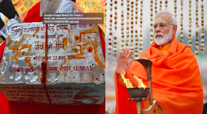 इस भव्य मंदिर निर्माण के लिए देश के अलग-अलग मंदिरों व पवित्र नदियों का जल लाया जा रहा है। इस क्रम में भूमि पूजन के बाद प्रधानमंत्री मोदी चांदी की ईंट से मंदिर निर्माण के लिए शिलान्यास करेंगे।आपको जानकर ख़ुशी होगी की यह ईंट करीब 22.6 किलोग्राम वजन की है। जिसकी बाजार में एक ईंट का मूल्य करीब 15 लाख 59 हजार रुपये है।